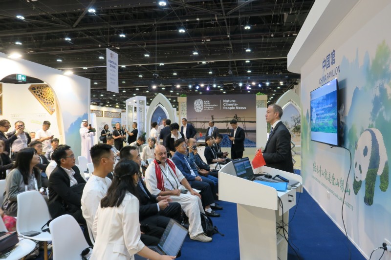當(dāng)天,自然資源部以“中國(guó)‘兩山理念’促進(jìn)自然資源變革性保護(hù)”為主題的中國(guó)專場(chǎng)活動(dòng)在開(kāi)幕首日成功舉辦。專場(chǎng)活動(dòng)通過(guò)案例分享、成果發(fā)布系統(tǒng)展示了中國(guó)在生態(tài)文明建設(shè)領(lǐng)域的理念、實(shí)踐與創(chuàng)新成果。中國(guó)駐阿聯(lián)酋大使張益明、世界自然保護(hù)聯(lián)盟副總干事斯圖爾特·馬吉尼斯出席并致辭。