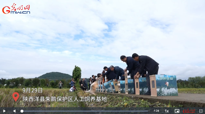光明網(wǎng)訊 9月29日,陜西洋縣朱鹮保護(hù)區(qū)人工飼養(yǎng)基地,15只野外救助的野生朱鹮在這里放歸。