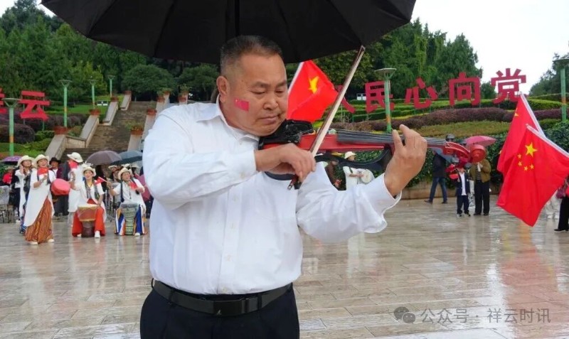 最后,全場(chǎng)齊唱《歌唱祖國(guó)》,嘹亮的歌聲匯聚成愛國(guó)的暖流,激蕩的情緒久久縈繞在龍翔公園上空,整個(gè)活動(dòng)氛圍推向高潮。祥云縣職業(yè)中學(xué)老師楊婷貞激動(dòng)地說:“雖然下著大雨,我們冒雨用鼓點(diǎn)表達(dá)我們對(duì)祖國(guó)的熱愛,希望我們的祖國(guó)越來(lái)越強(qiáng)大,人民的生活越來(lái)越豐富多彩?!?/p>