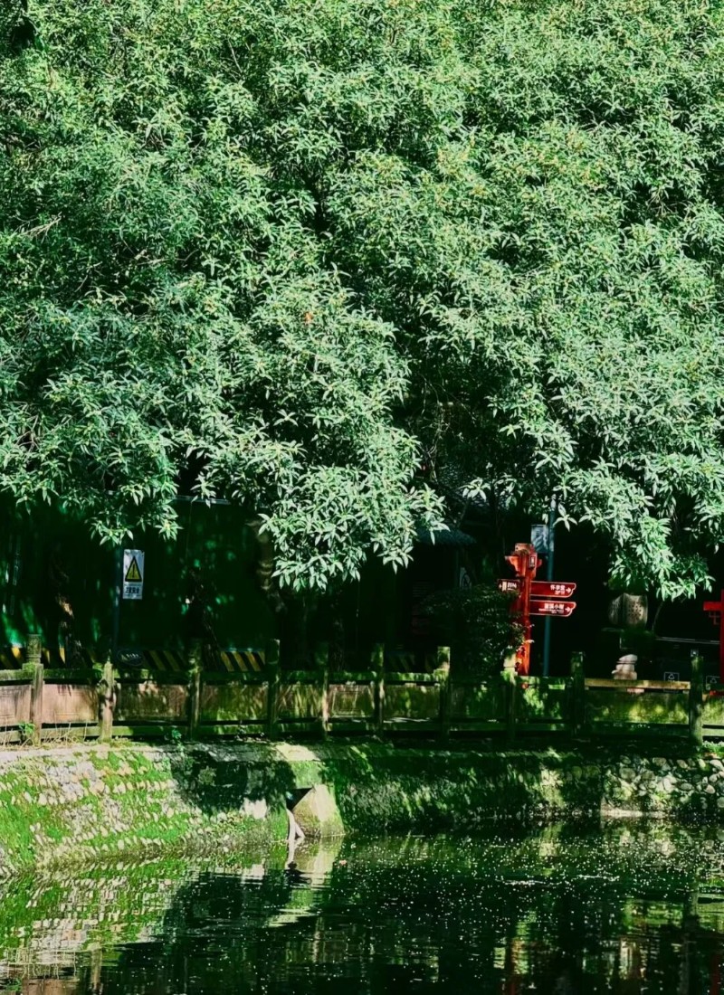 走過(guò)三賢堂,踱過(guò)曲橋,臨水亭榭憑欄而望,水面落了些許桂子,偶有一尾紅魚(yú)游過(guò),將金色的桂花晃得悠悠的。