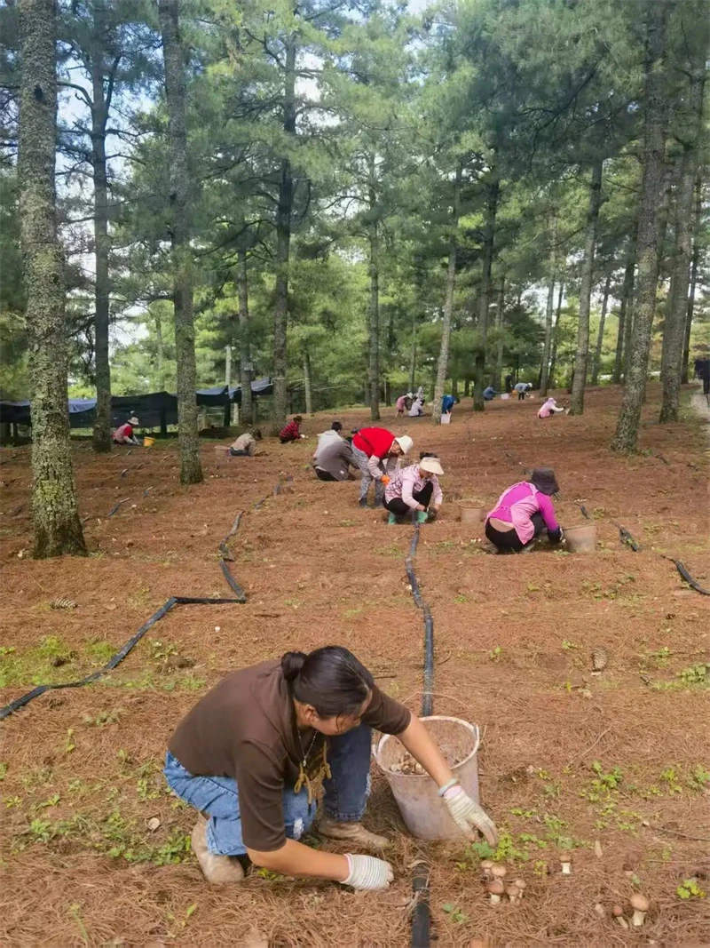 干旱少雨是劣勢,但也造就了楚雄州野生食用菌病蟲害更少、口感更鮮嫩。楚雄州以南華為代表和示范,大力推廣野生菌林地承包保育,實現(xiàn)了改革效益、生態(tài)效益、經(jīng)濟效益的多贏共贏。一是承包經(jīng)營,把林當“寶”護。推動集體林權(quán)家庭承包、聯(lián)戶承包、集體承包、企業(yè)承包,實現(xiàn)“山有其主、主有其權(quán)、權(quán)有其責、責有其利”;以“公開競價、價高者得”的方式確定山林菌菇采收權(quán),有效防止野生菌的無序、過度采摘,既保護了森林植被,又實現(xiàn)了菌農(nóng)的增產(chǎn)增收。2024年,南華縣五街鎮(zhèn)開們小組菌山承包經(jīng)營收入達141.9萬元,全村76戶408人實現(xiàn)人均分紅3478元。二是保育促繁,把菌當“菜”種。制定管理辦法、完善村規(guī)民約,實施封山育林改善野生菌生長環(huán)境,通過覆蓋農(nóng)膜、調(diào)整腐殖質(zhì)厚度等措施保育珍貴野生菌,有效提高野生菌產(chǎn)量和品質(zhì)。2024年,南華縣野生菌保育促繁面積達200萬畝,高標準建成以松茸、塊菌等為主的野生菌保育促繁科技示范基地16片8040畝。通過保育促繁,南華每畝菌山野生菌產(chǎn)量提高了1.2千克以上,其中松茸畝產(chǎn)由5至6千克增至10千克以上,最高達15千克。三是科學(xué)采收,把山當“地”耕。制定并實施松茸、牛肝菌采集方法、野生菌規(guī)范化管理暫行辦法,要求松茸、牛肝菌采摘高度必須達6厘米以上,采后須留相應(yīng)成熟開傘菌并恢復(fù)地表狀態(tài),最大限度保持菌塘活性、保證菌“地”肥力,實現(xiàn)野生菌的規(guī)范采摘、合理留種和持續(xù)利用。