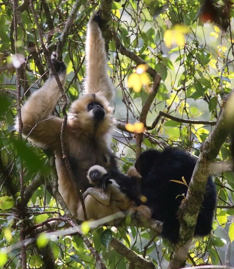 作為國家一級重點保護動物、世界極危物種,西黑冠長臂猿全球僅存約1500只,而在景東縣境內(nèi)就棲息著101群、600余只,占全球總量的43%,這里已然成為該物種最核心的家園。