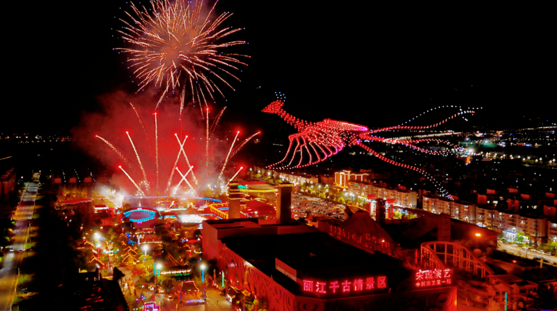 麗江千古情景區(qū)的煙花秀。(供圖)