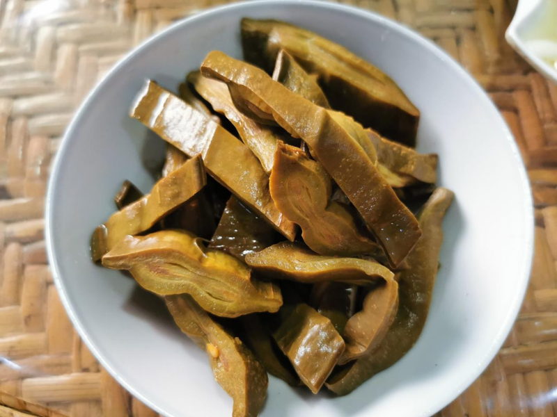 在云南西雙版納,常能看到一種外形奇特的食物——海船。經(jīng)炭火炙烤后,它焦香四溢,乍看之下與普通的烤蔬菜頗為相似。這其實(shí)是木蝴蝶的果實(shí),其外表就像一個(gè)巨大的豌豆莢,也像一艘大船,因此得名“海船”。