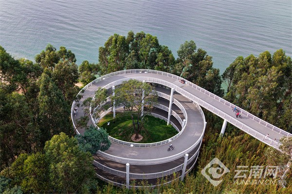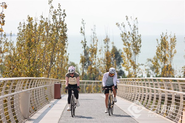 滇池綠道外海段上,市民游客或騎行、或漫步,或在“湖之橋”“山之橋”等標(biāo)志性景觀處打卡留念,徜徉于山水之間,在最美滇池綠道上盡情享受假日的愜意與滇池生態(tài)之美。