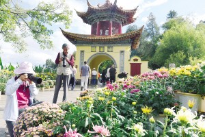 攝影愛好者在大觀公園拍菊花。