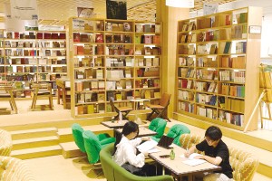 市民在“百里春秋”城市會(huì)客廳看書休閑。