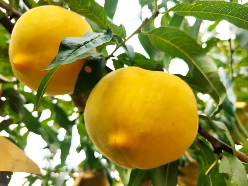 不同于普通果園,基地里的桃樹(shù)全部采用“兩株植物Y型”定型種植技術(shù),枝葉向兩側(cè)舒展,確保每顆桃子都能均勻接受光照。這一科學(xué)種植方式,正是黃金脆桃保持穩(wěn)定優(yōu)質(zhì)的關(guān)鍵。