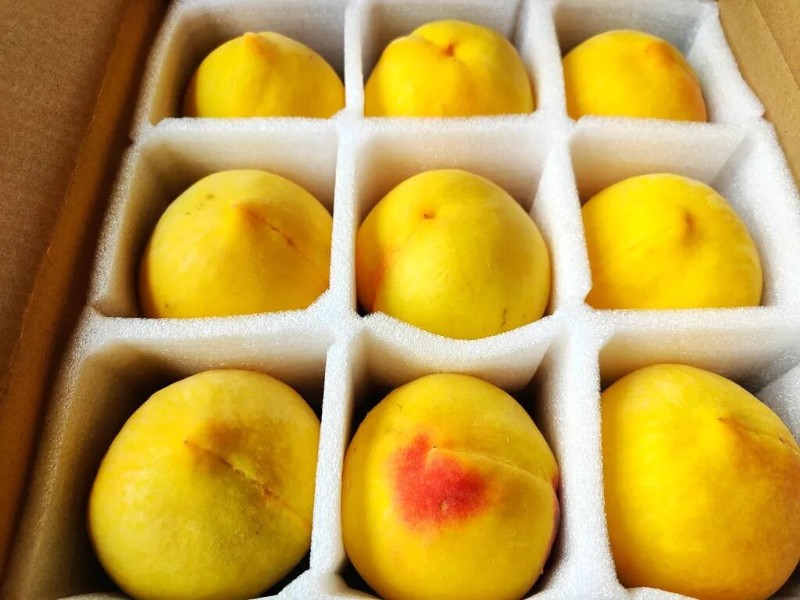 作為早年從山東引進(jìn)的“外來(lái)品種”,黃金脆蜜桃在宣威的落地并非偶然。經(jīng)過(guò)前期多品種篩選試種,其耐儲(chǔ)存、口感佳的優(yōu)勢(shì)逐漸凸顯,如今進(jìn)入豐產(chǎn)期已有三年。成熟的黃金脆蜜桃單果最大可達(dá)1斤以上,皮薄多汁的特質(zhì)讓它在市場(chǎng)上供不應(yīng)求。
