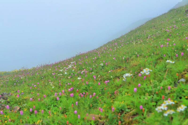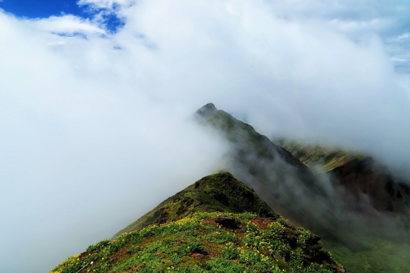 向云端,看云卷云舒。云化作最自由的旅伴:有時是輕薄的紗,纏在樹梢,讓楓葉的紅、樺樹的黃都蒙著一層朦朧的詩意;有時是厚重的棉,漫過青巖,只露出峰頂?shù)囊唤?,像水墨畫里未干的留白?/p>