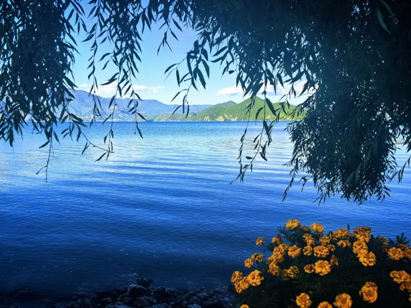 瀘沽湖的藍(lán),藏著層次豐富的驚喜。正午時分,陽光穿透云層灑向湖面,湖水呈現(xiàn)出透亮的湛藍(lán)色;午后微風(fēng)拂過,湖面泛起粼粼波光,藍(lán)色隨之靈動跳躍,淺藍(lán)如晴空、深藍(lán)似綢緞;這抹藍(lán)美的不可思議,藍(lán)的不真實(shí),小編悄悄撤下了濾鏡。