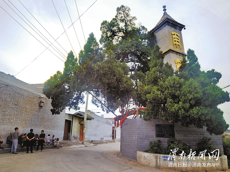 日頭剛過正午,韓城市芝川鎮(zhèn)南西莊村村口的柏抱塔下的陰涼就鋪展開來。古塔被五百年的古柏虬枝半攬著,柏葉鋪出的涼蔭,像塊天然的地毯,從塔根一直鋪到三丈外的長條石臺旁。迎著徐徐涼風,村里的大爺、大媽們,拿著撲克牌、象棋,抱著孩子,牽著小狗,陸陸續(xù)續(xù)也來了:“聽說沒?今年村里好幾個大學生……”柏樹枝葉沙沙響,像是也在湊這個熱鬧——作為村里的“活地標”,這方被古柏和古塔護著的小天地,又開始了一天里最熱鬧的“消息播報”。