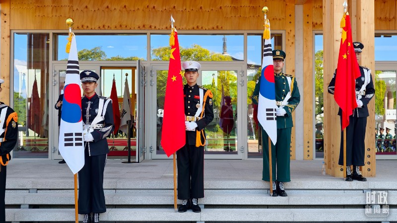 在慶州博物館的千年微笑館,李在明總統(tǒng)為習主席舉行高規(guī)格歡迎儀式,身著傳統(tǒng)民族服飾的韓國禮儀隊,隆重歡迎習主席到來。
