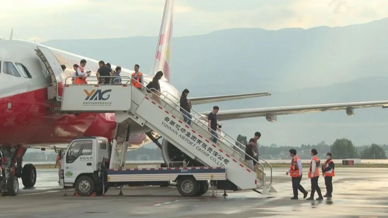 游客抵達(dá)麗江三義國(guó)際機(jī)場(chǎng)。(供圖)