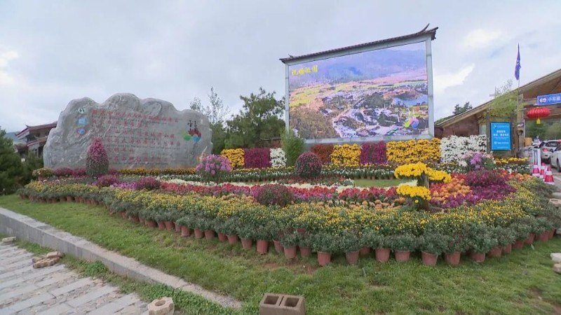 麗江古城景區(qū),游客紛紛與菊花合影。(麗江融媒記者 木雯嬌 攝)