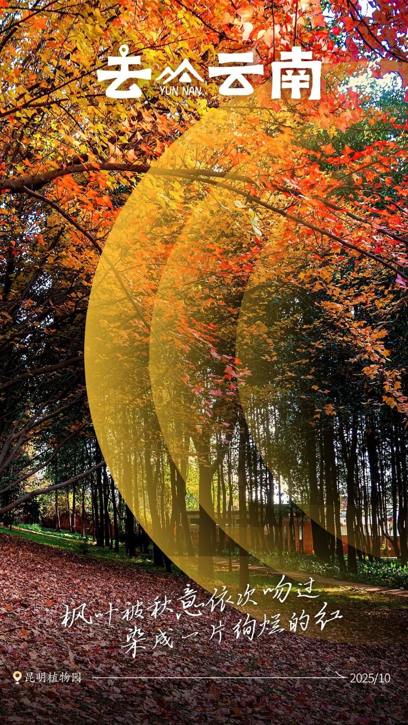 一場秋風(fēng),給昆明植物園柚黃色的楓葉染上一絲紅。