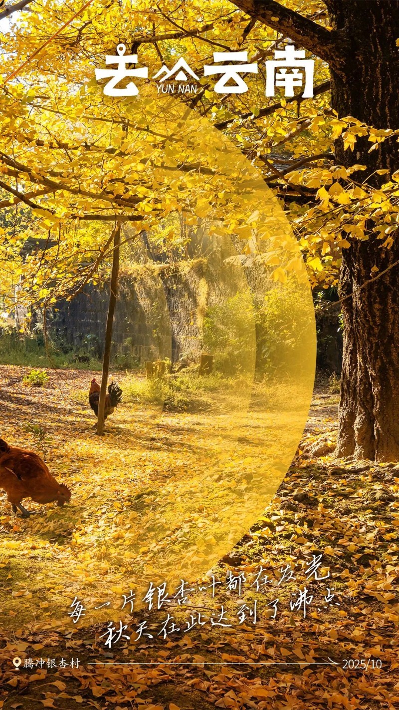 這時(shí)候的騰沖銀杏村,就是一個(gè)金黃的童話世界。