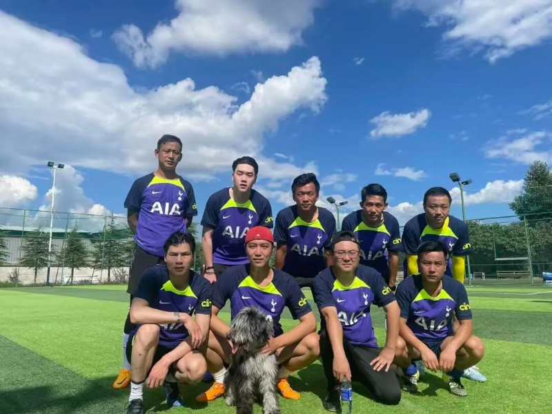 劉相植和麗江當(dāng)?shù)厝私M建的球隊(duì),前排左二為劉相植。(供圖)