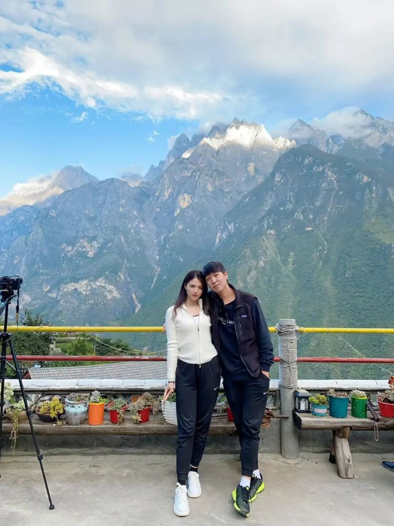 劉相植夫妻在虎跳峽游玩。(供圖)