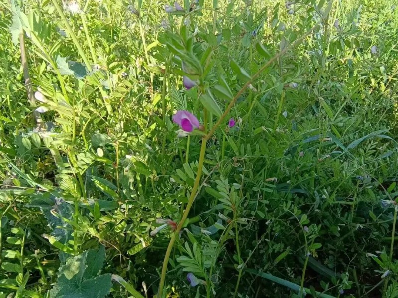 豆科野豌豆屬一年生或多年生草本植物,主莖匍匐,斜升或攀緣,具棱,被柔毛,長30—100厘米。偶數(shù)羽狀復(fù)葉,長7—12厘米,葉軸頂端卷須發(fā)達(dá);托葉半戟形,有2—4裂齒;小葉5—7對,長卵圓形或長圓披針形,先端鈍或平截,微凹,有短尖頭,基部圓形,兩面被柔毛?;ǔ?—4朵腋生;花萼鐘狀,萼齒披針形或錐形,短于萼筒;花冠紅色、近紫色至淺粉紅色,稀白色;旗瓣近提琴形,先端凹,翼瓣短于旗瓣,龍骨瓣內(nèi)彎,最短。莢果長圓狀線形,長2.1—3.9厘米,寬0.5—0.7厘米,成熟時亮黑色,先端具喙,微彎,內(nèi)含種子5—7粒。種子扁圓球形,表皮棕色有斑。全生育期約150天。適應(yīng)性較強,飼草品質(zhì)好。