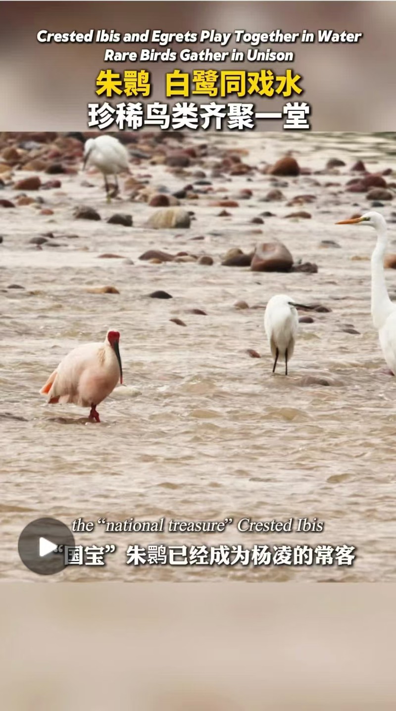 近日,朱鹮、黑鸛、白琵鷺齊聚渭河楊凌段一同覓食。近年來,渭河楊凌段有記錄的國家Ⅰ級保護(hù)動物有朱鹮、黑鸛等四種,國家Ⅱ級保護(hù)動物有鴛鴦、白琵鷺等。隨著渭河生態(tài)環(huán)境的改善,“國寶”朱鹮已經(jīng)成為楊凌的???。(實習(xí)記者:詹學(xué)林 視頻拍攝:楊廣庫)