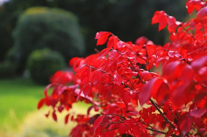 火焰衛(wèi)矛春夏枝條挺拔葉色深綠,秋季葉片亮眼鮮紅,具有極高的觀賞價值,在園林中也有廣泛應(yīng)用,可用作球形植株孤植,也可用作背景植物栽植,與其他植物配植在豐富種植種類的同時,營造出更為豐富多樣的色彩。