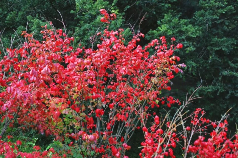 此時的火焰衛(wèi)矛褪去了夏日的深綠,換上了一身耀眼紅裝,迎來了生命中最耀眼的章節(jié)。無需刻意尋找,漫步于小徑,那一片片熾烈的紅,便猝不及防地撞入眼簾,邀請所有匆匆的目光為它停留。
