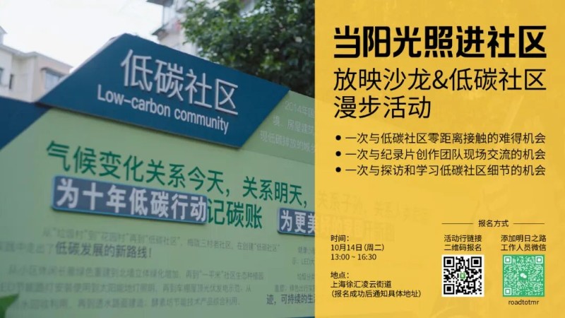 另外,明日之路將在上海做一場微紀錄片放映沙龍及低碳社區(qū)citywalk活動,感興趣的快來報名吧~~