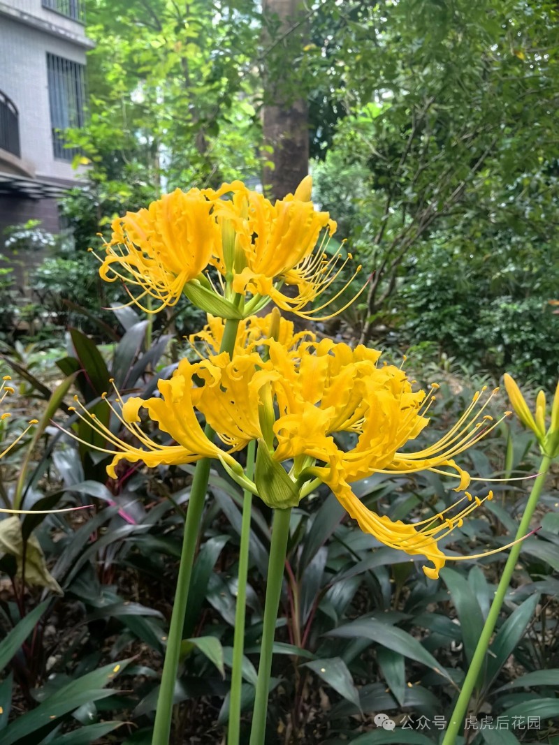 忽地笑的花朵和石蒜花非常相似,可以理解為開黃色花朵的石蒜。