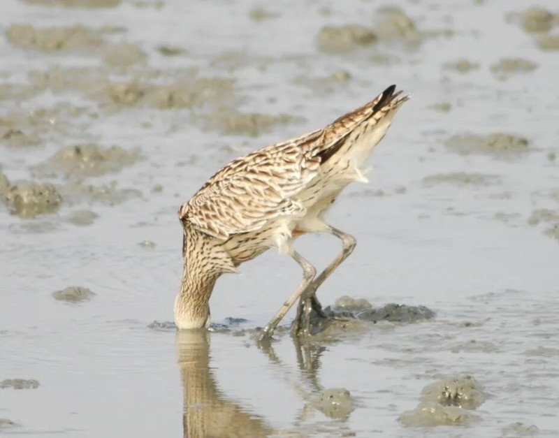 順帶一提,大杓鷸的雌性要比雄性大上一些,喙也比雄性的更長。相應(yīng)地,兩者在捕食策略上也存在著些微不同:有研究指出,雌性大杓鷸傾向于單獨(dú)行動,探查泥沙深處,雄性則會形成松散的集群,掃蕩灘涂淺層。