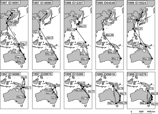 大杓鷸的遷徙路線追蹤 Driscoll & Ueta, 2002