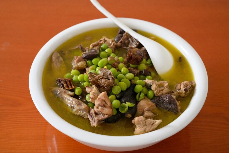 若說烤銀杏是家常小味,那白果燉土雞,就是騰沖人宴客的“硬菜”。雞是銀杏林里散養(yǎng)的,將土陶鍋裝滿清水,丟進(jìn)雞塊,用大火燒沸后轉(zhuǎn)小火慢煨,讓食材的鮮香物質(zhì)充分溶解。等雞肉燉得能用筷子戳透,再放進(jìn)剝好的銀杏果,繼續(xù)燉上半個小時。掀開鍋蓋的瞬間,香氣能飄出半條街——雞湯金黃透亮,銀杏果吸滿了湯汁,咬一口軟乎乎的。白果的清香融入雞肉的鮮美,湯汁金黃透亮,入口甘甜,仿佛把整個騰沖的秋日都燉進(jìn)了這一鍋之中。