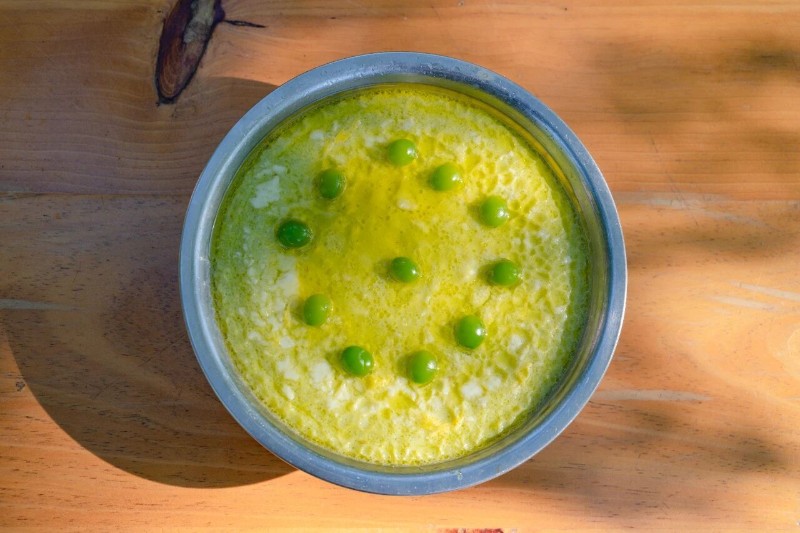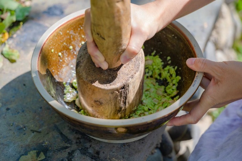吃完咸鮮的菜,再來份銀杏甜品才算完整。這碗羹,甜而不膩,溫潤養(yǎng)人,是代代相傳的味覺記憶。將新鮮的銀杏果搗碎了濾出汁,加入打散的雞蛋液,淋一勺自家煉好的土雞油,再撒點(diǎn)蜂蜜攪勻,上鍋蒸到凝固。蒸好的銀杏羹,顏色像剛冒芽的銀杏葉,淺綠中帶著點(diǎn)嫩黃,舀一勺滑進(jìn)嘴里,甜而不膩,帶著銀杏的清新、蜂蜜的甜潤,連吃兩碗都覺得不夠。
