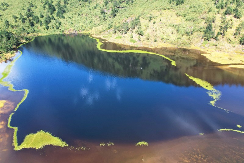 恍惚間,我們抵達(dá)此行的終點——隱匿于碧羅雪山褶皺中的天然湖泊“郭迪依比湖”,即俗稱的達(dá)友高山湖。遠(yuǎn)望湖泊,形如墨綠葫蘆靜嵌于山間;陽光下,湖面如銀鏡熠熠生輝。走近湖畔,沼澤中成片龍膽花送來陣陣幽香,紫色花朵簇?fù)硎㈤_。山風(fēng)掠過,湖面泛起粼粼波光,花海隨之搖曳,為秋日山谷增添幾分詩意。我小心穿行于沼澤,屢次試圖以鏡頭記錄這廣闊景致,卻深感其難以盡收。遂走出沼澤,仰臥于枯草叢中,任秋意輕擁身心。往昔煩憂,此刻皆如輕煙融于流云,在澄澈碧空中滌蕩消散。
