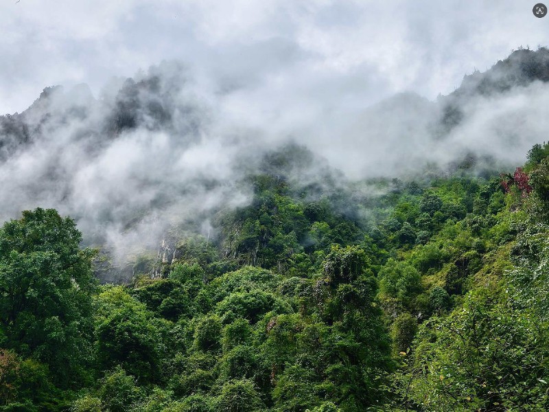 稍事休息后,我們沿一條修建于二十世紀(jì)五十年代末的水渠向深山行進(jìn),正式開啟徒步旅程。該水渠依山勢蜿蜒延伸,宛若一條盤踞山間的臥龍,其西側(cè)為深不見底的懸崖。雨后路面濕滑,僅三四十公分寬的水泥步道需謹(jǐn)慎前行。約一小時后,我們轉(zhuǎn)入一條隱于雜草叢中的陡坡。此時,山間天氣驟變,秋雨不期而至,為行程增添了幾分困難。同行的阿肯大哥察覺我們的憂慮,鼓勵道:“聽見水流聲了嗎?到達(dá)河邊,我們就完成了三分之一的路程?!边@番話重燃了我們的信心。借助登山杖,我們繼續(xù)攀爬,水流聲漸近,心中希望也隨之增長。