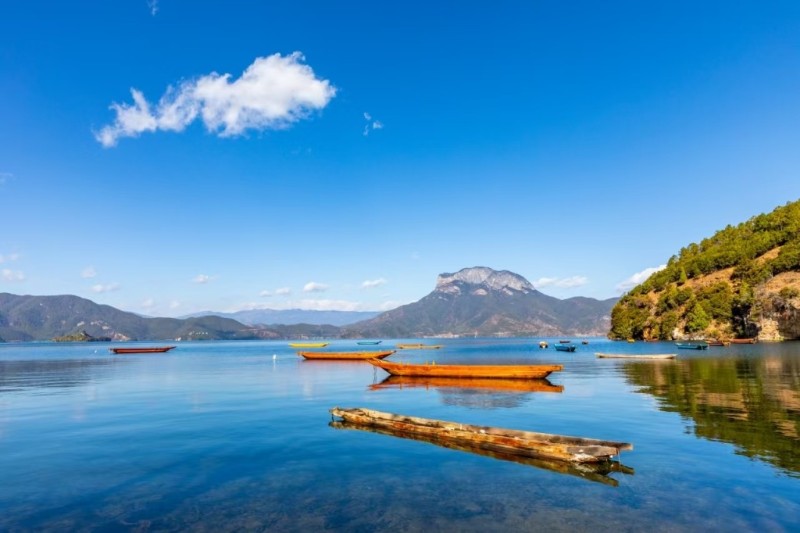 清晨6點,薄霧未散,格姆女神山若隱若現(xiàn)。待朝陽躍出山脊,瀘沽湖瞬間被點亮,波光中仿佛藏著千萬個太陽。此時,騎一輛自行車環(huán)湖而行,累了便在岸邊小坐,享受秋日最溫暖的饋贈。