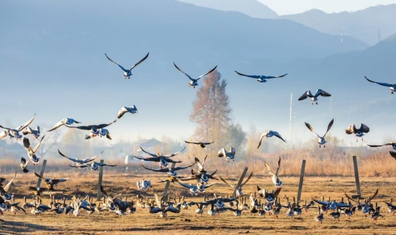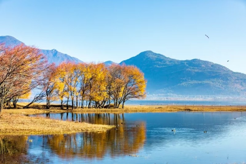 秋天的麗江,是雪山與湖泊的私語,是古巷與桂香的纏綿,是候鳥與“彩林”的約定。