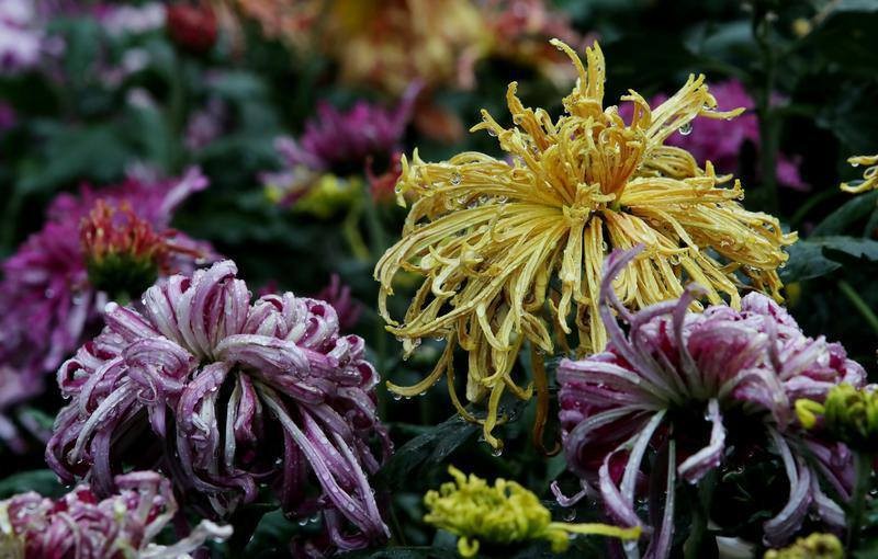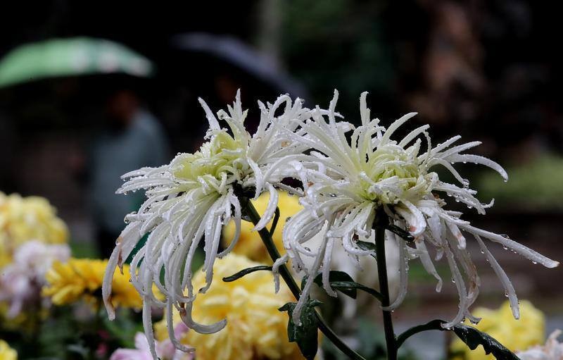 10月8日是二十四節(jié)氣中的第十七個(gè)節(jié)氣——寒露,在菊花盛放的云南省昆明市大觀公園,朵朵菊花在綿綿秋雨中顯得溫潤(rùn)雅致,片片菊瓣鍍上晶瑩水珠,盡展清透驚艷風(fēng)姿,引得不少市民游人前來(lái)聽雨觀菊賞黃華。楊崢 攝