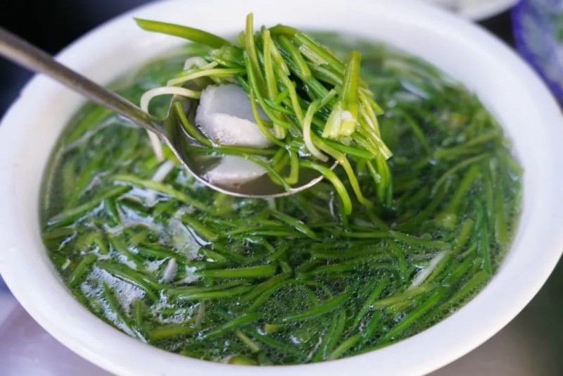海菜芋頭湯,用海菜和芋頭一起燒湯,甜糯鮮嫩,清爽可口。(此處提及的海菜花為人工種植)