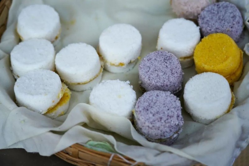 巍山小甑合糕米香濃郁、軟糯香甜,當(dāng)?shù)厝藢⑸虾玫拇竺啄コ擅酌?,放到甑子里蒸熟,便可享用?/p>